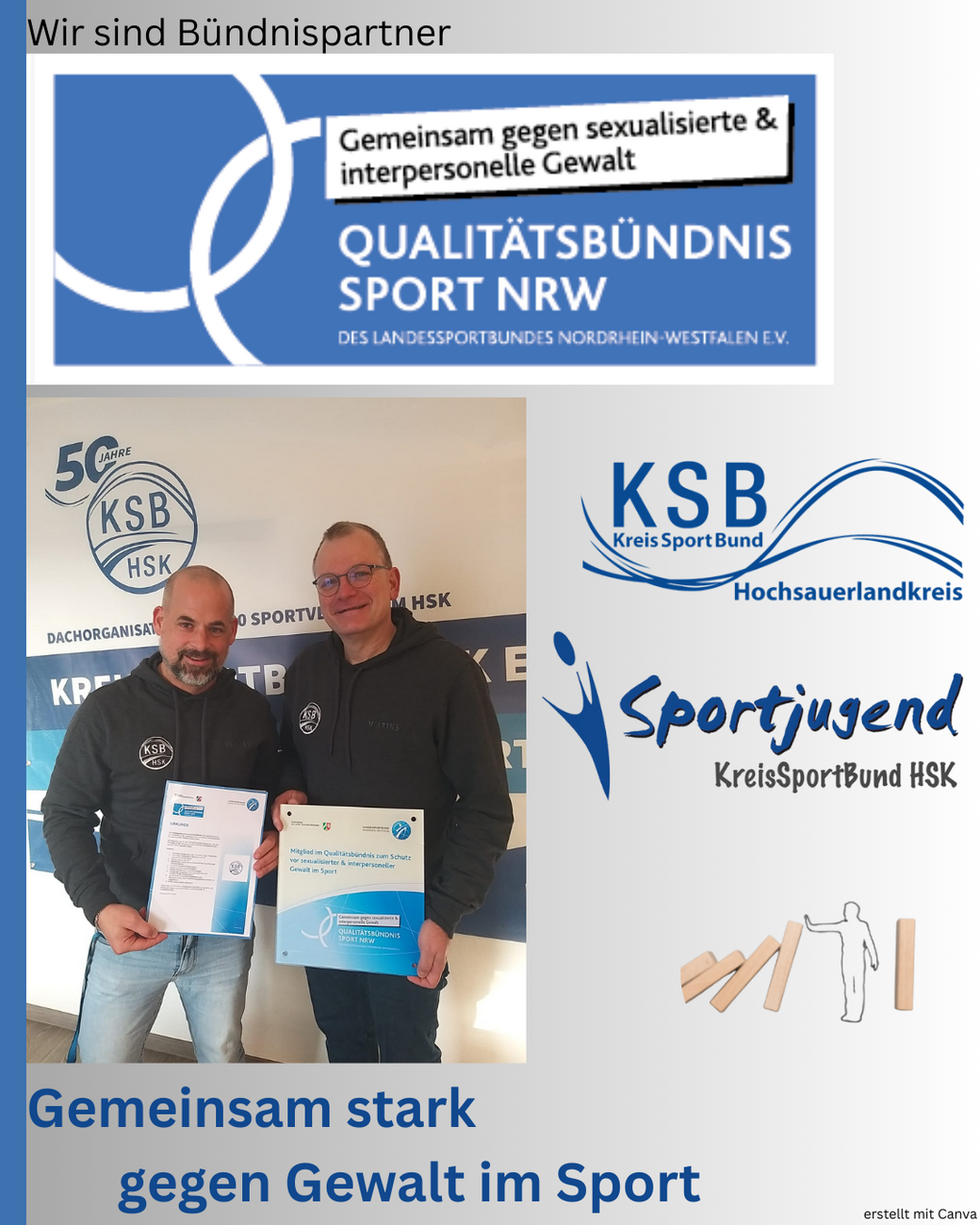Mit dem Eintritt in das Qualitätsbündis Sport NRW des Landessportbund Nordrhein-Westfalen e.V. möchten wir ein Zeichen setzen und allen Sportvereine im HSK ermutigen sich ebenfalls auf den Weg zu machen.